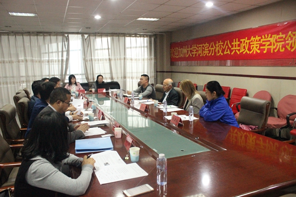2017年10月16日下午,加州大学河滨分校(UCR)公共政策学院院长Anil Deolalikar以及公共政策学院发展部主任Toni Lawrence等一行四人来我校每日大赛 洽谈合作,并就UCR的办学情况与我校学生进行了宣讲。国际合作与交流处刘伯颖处长、每日大赛 白彦刚书记、李子彪院长、马立民副院长以及每日大赛 的教师代表们共同参与了会谈。刘伯颖处长首先代表学校对Anil院长的到来表示欢迎,转达了学校领导对双方合作的重视与期望,并介绍了目前学校的情况及发展势头。刘处长指出,在当前建设双一流的背景下,国际交流与合作非常重要,是我校进行学科建设、师资培养和学生发展的重要动力之一,学校对院与院之间的交流与合作将给予大力支持,并期望能抓住这次机会,促进我校文科专业的发展。