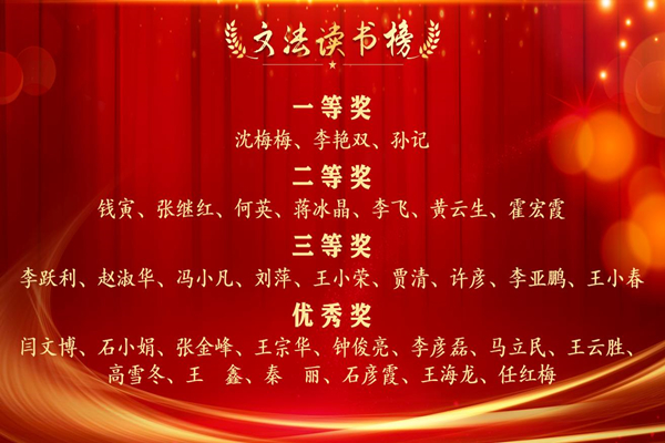 为进一步提升全院教职工的文化素质,调动教职工参与集体活动的积极性,树立“以院为家、敬业奉献”的意识,学院组织开展了《文法读书榜》《好人好事儿榜》《运动达人榜》和《常驻学院榜》等活动。