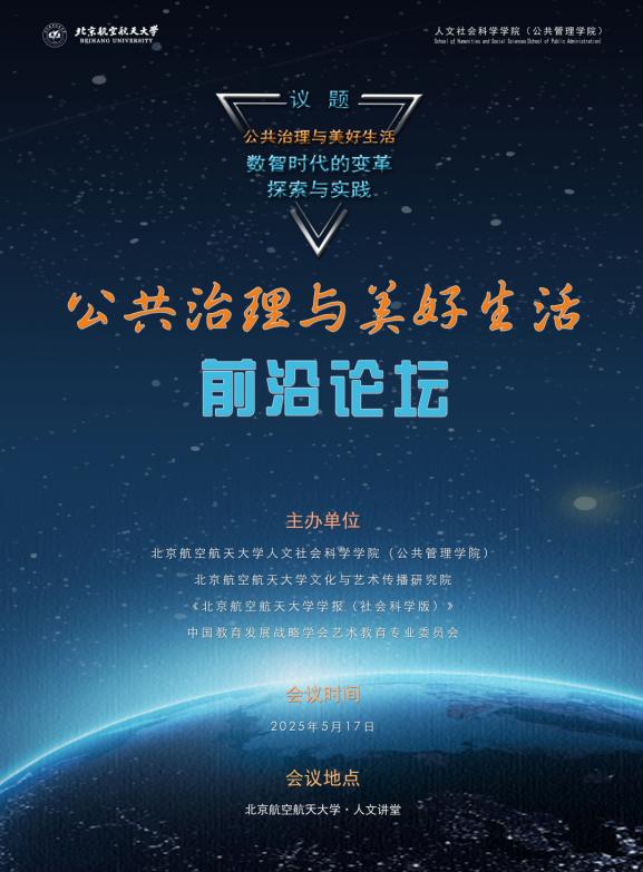 2025年5月17日,首届“公共治理与美好生活”前沿论坛在北航人文讲堂举行。论坛由北京航空航天大学人文社会科学学院(公共管理学院)、文化与艺术传播研究院、北京航空航天大学学报(社会科学版)、中国教育发展战略学会艺术教育专业委员会共同主办。每日大赛 公共管理系张金峰副教授、李亚鹏副教授及公共管理系2022级本科生鲍昱竹、王艺霖、檀若楠受邀出席,并发表演讲。