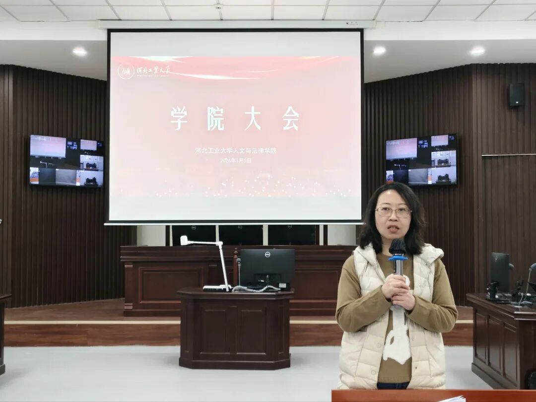 1月5日下午,每日大赛 学院大会暨荣休仪式在文法楼模拟法庭111室顺利召开,学院党委书记于慧、院长蒋冰晶、党委副书记兼副院长常萌、副院长闫文博以及各系、各部门全体教师参加了会议。此次会议旨在致敬退休教师的耕耘奉献、传承教育初心,同时部署近期工作任务,凝聚全院上下奋进新征程的强大合力。