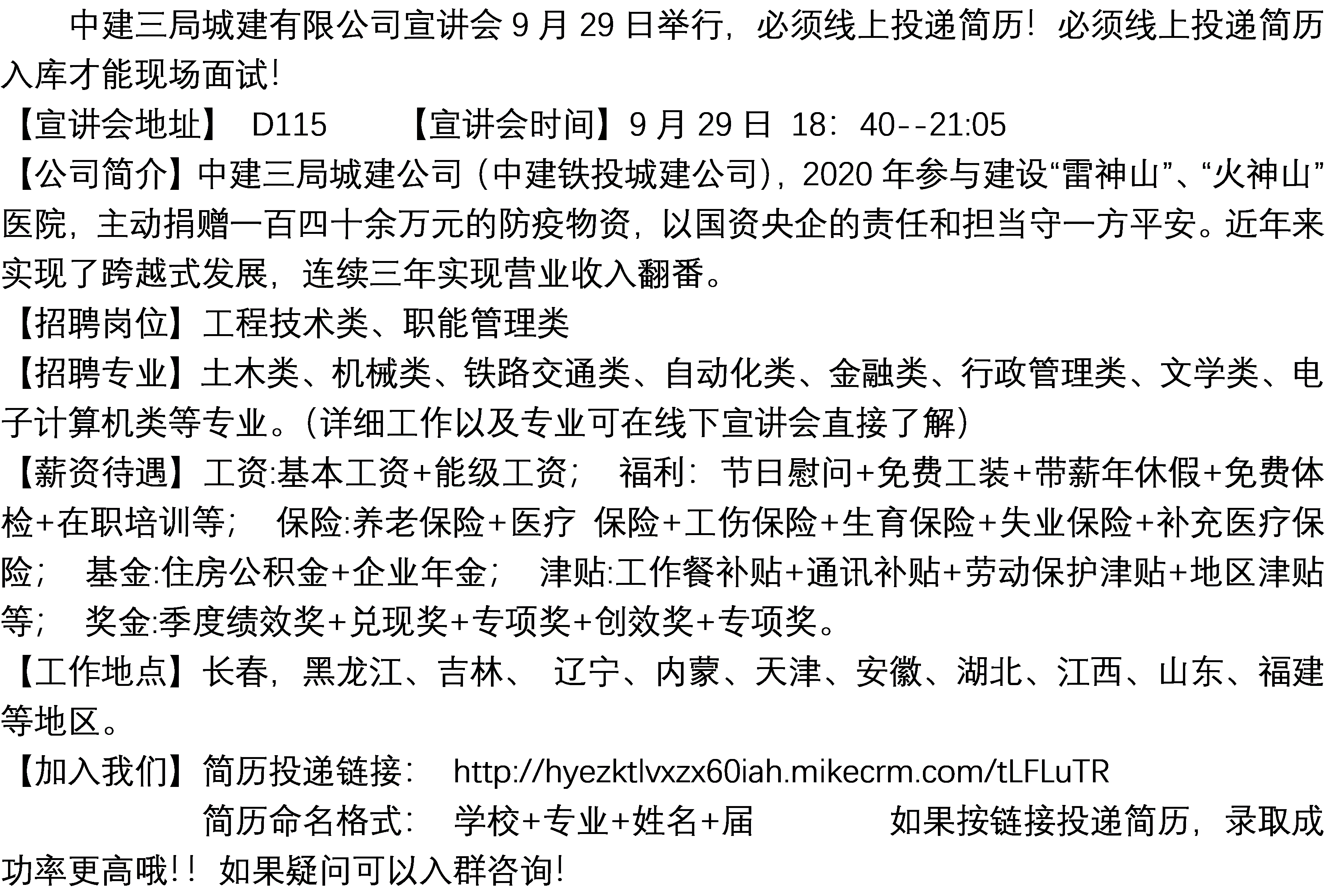 中建三局城建有限公司宣讲会